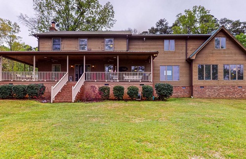 Large lakefront home with porch, private dock, fire pit, WiFi, & AC | House in Leesville