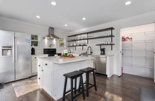 Welcome to your home away from home! This impressive property combines stylish design with all the amenities you need for a memorable stay. Featuring 5 comfortable king beds, along with a spacious fenced backyard, this home is perfectly located for exploring local gems. Enjoy nearby charming boutiques, lively restaurants, stadiums, and popular Kansas City landmarks—all just minutes away.