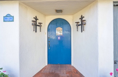 This home is a classic French indoor/outdoor house. As you enter, you'll walk through a breezeway to the center courtyard. Four of the six bedrooms can be accessed directly from the courtyard. This includes one bedroom with a king bed and full bath, one bedroom with twin beds and a full bath, and two other bedrooms, one with a queen bed and the other with twin beds. These two bedrooms share a shower bathroom. There is another bedroom on the main floor off of the living room. This bedroom has a queen bed and a shower bathroom. The sixth bedroom is downstairs off of the game room. This bedroom has a king bed and shower bathroom.