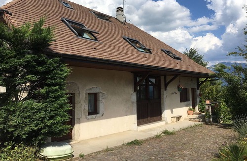 Old closed typical Savoyard entirely renovated at 700m on the Annecy-Geneva axis with view of Lake Annecy and the mountains of Salève aux Bauges; 12 minutes from Annecy and the lake, 25 minutes from Geneva, 40 minutes from the ski resorts.