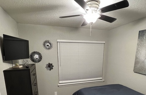 The entire property, inside and out, is fully remodeled. Located in the center of the city in the historic neighborhood of Shearview Hills. The house has 4 bedrooms and 2 baths. The master bedroom has a decorative fireplace. This home has a VERY large living room with multiple perks and amenities. There’s a total of 3 queen beds, a 1 full bed, and 2 comfortable sofa beds. As well as a comfortable L-shaped sectional. We have extra air mattresses if additional beds are needed. This is the perfect spot for groups who want luxury and comfort. Make the best memories here with your family and friends at our spacious home.