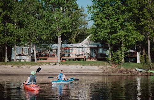 This 4-season waterfront chalet on the Ottawa River features a large sunroom, and expansive deck overlooking a sandy beach with stunning sunset views. Enjoy all day sun lounging on the private deck and sandy beach with gradual entrance into the water. We've got kayaks, a BBQ, and an indoor gas fireplace.