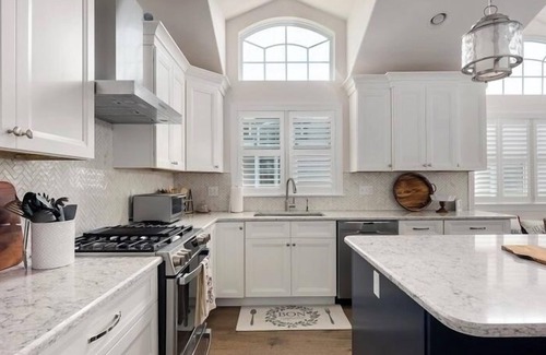 This premium rental property includes 6 bedrooms and 4 full bathrooms and 1 half bathroom. The bonus room (6th bedroom) includes 2 sets of custom-made bunk beds with 4 single beds and a full bathroom. The 4 bedrooms on the next level include 1 king size bed in the master suite and three bedrooms each with a queen size bed. One of the bedrooms with the queen bed will include a single bed as well. There is a shared bathroom on this level. The top floor includes a fully stocked chef's kitchen; wet bar with wine and beer fridge, ice maker and sink; gas fireplace; and sitting area with a furnished covered deck and ceiling fan. There is also a master suite on this level with a king size bed. This rental will include bikes, beach chairs, high end Weber grill, seating for 12+ in the kitchen as well as top floor deck, and much more! This property also includes an elevator from the garage to the top floor. Linen service is provided by the owner for rentals in June-August.