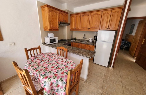 A comfortably furnished one bedroom apartment, overlooking the pool and situated in a great location, central to everything you need such as the main bus stop of Las Americas, bars, restaurants, supermarkets etc... and less than 10 minutes walk to the beach.