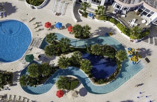 This luxury 1 bedroom condominium that sleeps 6 and offers a full kitchen with a stove, refrigerator with an icemaker, dishwasher, microwave, coffee maker, blender, electric can opener, and all the necessary cooking, serving, and dining utensils; a spacious living room with a Queen size pull out sofa bed. In the bedroom you will find 2 full size beds, a flat screen HDTV and premium HD cable. Throughout the unit you can enjoy the free high speed wireless internet. This unit also comes equipped with a washer and dryer. The balcony is over-sized and overlooks the lazy river and the water slide, providing breathtaking views of the Atlantic Ocean, especially the sunrises.