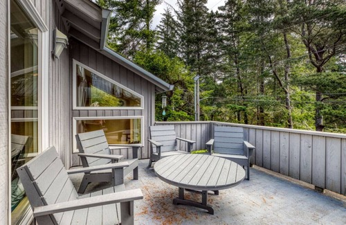 Enjoy the best of both worlds in this airy 2-bedroom, 2-bath getaway just a 5-minute walk to the beach and tucked among quiet coastal trees. Located in Manzanita, this cozy retreat is perfect for exploring the Oregon Coast.