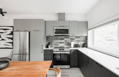 Close to hiking trails, mountain climbing, and more, this pet-friendly chalet brings it all within reach. Thanks to the convenient onsite parking, you can either leave your vehicle behind and enjoy a short 5-minute walk to Le P'tit Train du Nord, or easily tackle the quick 5-minute drive to La Conception Park.