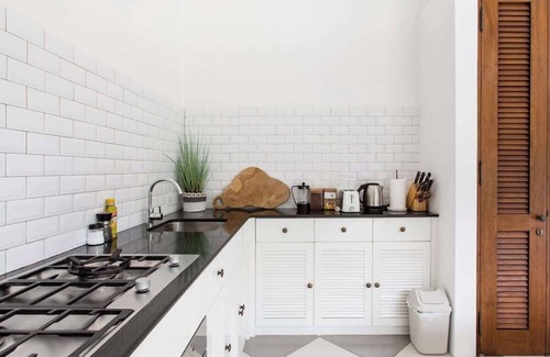 Embrace the Balinese charm of this tropical escape. Villa Wahah features an all-white color scheme contrasted by warm woods, flowing indoor-to-outdoor living spaces, and a tropical garden terrace.