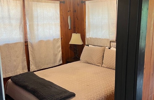 Cabin 2 is a two-bedroom cabin, which sleeps up to 4. It has been totally remodeled with brand new furniture and appliances. There is a screened-in porch and a new deck.