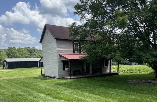 Escape to the quiet beauty of Hocking Hills at Home Place, a charming farmhouse near McArthur, OH. This peaceful retreat sleeps up to 6 with 2 bedrooms (2 queens + 1 king) and a full-size pull-out couch in the upstairs TV area.