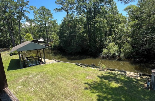 Stay in the river and catch bass, bream and catfish or venture into the bay and catch redfish, trout and mullet. The home features a private concrete boat launch, dock, and boat lift in the brackish water canal behind the home for your boat. Enjoy accessing the home for your stay by water or land. Our favorite way to access is by boat- launching at the West Bay bridge in Panama City and running down the intracoastal waterway into the bay.