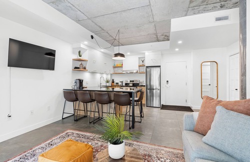 Washer-dryer in the apartment. 9-foot ceilings, quartz kitchen counters, fully equipped kitchen including dishwasher and Keurig coffee machine, air conditioning, Netflix and a few touches for your greatest comfort!