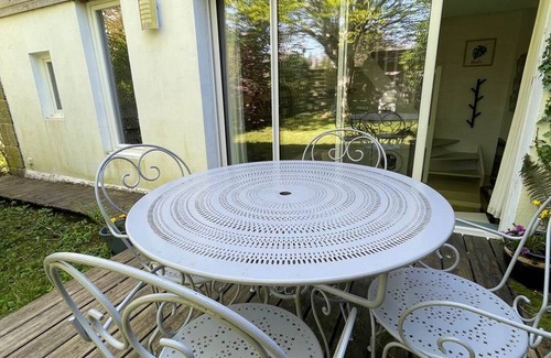 The "Gite des Paludiers" is a pretty furnished accommodation of 60 m² with its private garden of 100 m² in the center of Guérande. Composed of an equipped kitchen and a living room overlooking the garden, it has 2 bedrooms upstairs with a double bed and two single beds. The bathroom and WC are independent. The garden offers a beautiful terrace with a garden table and a barbecue. Free parking is nearby.