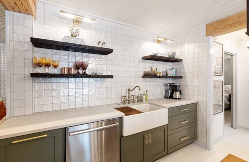 Here at Le Hibou Blanc the feel is innovative, charming and intimately connected to Mobile Bay just steps beyond our front door. Conveniently, tucked between downtown Fairhope and Historic Point Clear, enjoy the close proximity to public boat launch 1/4 mile away, 1/2 mile to Two Sister's Bakery & Deli, 1 mile to Downtown shopping & dining, and just 2 miles to the famous Grand Hotel Resort & Golf Club. Walk next door to find the famous neighborhood Italian bistro, Gambino's, offering authentic cuisine & piano bar. Across the street, check out the tiki bar & Legion for afternoon cocktails & brews. Le Hibou Blanc wants to capture a feeling as much as they do character, where everyone who visits feels as if they have been welcomed into Fairhope and our own home. Experience the quintessential laid-back sophistication with indoor-outdoor flow, chef's kitchen equipped with black & brass gas range, dreamy white & subtle grey veining Quartzite natural stone kitchen counters, naturally honed marble bathrooms, fully stocked honor bar, complimentary & luxurious Molton Brown of London bath products, crisp white Suzanne Kasler bed linens, 21x15 screened-in porch with gas fireplace, outdoor tv & hanging porch swing. We offer 2 complimentary bicycles & helmets, grill, beach chairs, books & games. Our carefully curated design exudes conversation, imagination, relaxation & nostalgia. Settle into the easygoing pace of life by the water, where an authentic Fairhope experience awaits.