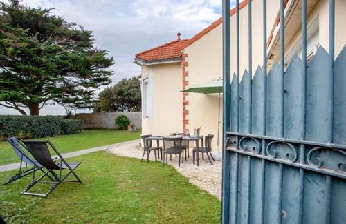 2-family house "Le Plan d'Eau". 2 houses in the residence. In the centre of La Bernerie en Retz, 50 m from the sea, 50 m from the beach, in a cul-de-sac, south facing position. For shared use: well-kept garden (fenced), parking (limited number of spaces). Shop, restaurant, bakery 200 m, pedestrian zone 30 m, bus stop "Bourg de la Bernerie en Retz" 100 m, railway station "La Bernerie en Retz" 800 m, sandy beach "Plan d'Eau" 50 m, thermal baths "Alliance Thalasso & Spa Pornic" 8 km. Golf course (18 hole) 10 km. Nearby attractions: Pornic 6 m, Planète Sauvage 26 m, Nantes 46 m, Ile de Noirmoutier 52 m, La Baule 52 m. Hiking paths: Promenade Wilson 300 m. Please note: the keys‘ handover takes place by the agency Interhome in Pornic, 6 km. Owner lives in separate semi-detached house. Additional accommodations can be booked.
