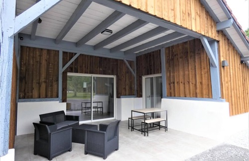 Welcome to Herm, a small Landes village between the ocean and the forest. For a holiday for two, a spa treatment or as part of a business trip, we offer you a comfortable stopover. Here you will appreciate the exterior character of this old traditional farm with wooden cladding, the functional layout of the premises, the brightness of the rooms as well as the covered outdoor terrace. On site, the owner's small hotel restaurant will allow you to discover a rich and generous local gastronomy. Easy to access with the A63 motorway 500m away, you can easily travel to the beaches, the Basque Country or even Spain. A nice address to discover in all seasons. This old sheepfold has been completely renovated and divided into 2 adjoining gîtes. This rental, on one level, is arranged as follows: - a living room with lounge (TV, WIFI), dining area and equipped kitchenette (fridge, 4 ceramic hobs, electric oven, dishwasher, microwave, extractor hood), - two bedrooms (1 bed 160x200 and 1 bed 140x190), - a bathroom accessible to people with reduced mobility (Italian shower and toilet). A private covered terrace with garden furniture and electric plancha extends the interior living space. For your comfort, water, electricity and heating charges are included in the price. Baby equipment (travel cot, high chair and bathtub) can be provided on request.