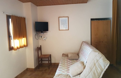 The studio is on the ground floor, opening to the South by a French window on a terrace with table, chairs, relax and barbecue.