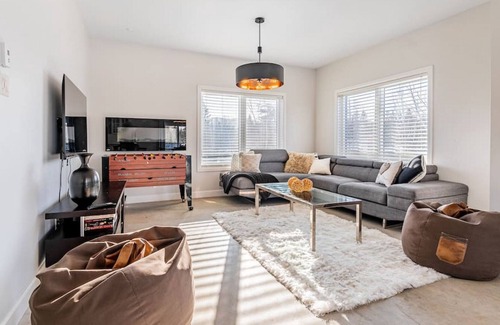Chalet style grand condo de luxe au pied de la montagne de Ski Val-St-Côme. Ayant son propre lac semi privé, une belle petite plage, quelques embarcations et un magnifique coin feu. Un nouveau spa privé extérieur. Vous allez adorer l’endroit été comme hiver! Table de Baby foot, BBQ, télé intelligente, grand Ilot, belle terrasse, plusieurs jeux de société, jeux pour l’extérieur et même tout pour accueillir vos fidèles compagnons à 4 pattes! Tout est là pour le plaisir de tous.