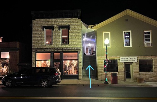 The Loft is located on the second story above the bakery. Guests must climb a set of stairs. Please see picture attached to the listing.