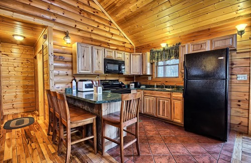 Full Kitchen, Living Room, wood-burning fireplace, Hot Tub and more!