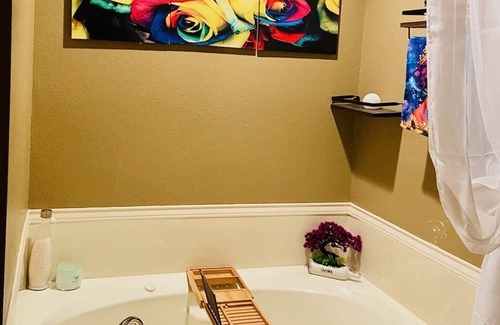 Bring the whole family to our quiet welcoming getaway home. This home includes a 3 bedroom 2 bath, master suite with an amazing whirlpool jet tub, a separate shower and walk in closet for space. There is LED lighting in every room to enjoy at night and motion sensor lighting through the walkways. The living room has a 68in TV with a PS4 game system and Virtual Reality Headset included for your entertainment. (No games included) The entire family can sleep comfortably as it sleeps up to 6 or 7 people. We provide free Wifi with your stay along with heating to make sure you have a comfortable stay.