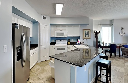 The fully equipped kitchen offers all of the necessary appliances and cookware needed to craft homemade meals and beach snacks. A breakfast bar plus a dining table will make mealtime a breeze. The living room set features a Smart TV, so you can catch up on your favorite shows or watch a movie together. Each of the three bedrooms offers a TV, space to unpack, and room to unwind. Make your way downstairs to experience the beach, community pool, and picnic areas—less than two minutes from inside the welcoming unit to feeling the sand between your toes!