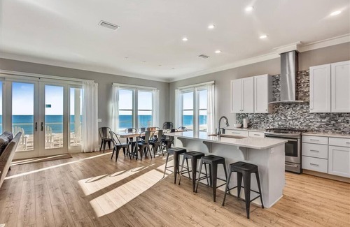 Legasea is a beachfront beauty with amazing views. Custom built by Gary Ulrich and decorated by the owners, this home features a contemporary, relaxed feel. Decorated in the colors of sand and sea, the open living area on the first floor features rustic textures and modern hues that blend perfectly. Covered porches invite you to enjoy panoramic views of the Gulf. Quartz counters in the open kitchen are a perfect complement to the glass tile backsplash and highlight the home?s clean lines. The large dining table seats 12 with additional seating at the kitchen island. The main living area boasts a large smart TV, comfortable seating, a lovely powder room and gorgeous views of the beach and Gulf. All 5 bedrooms have en suite bathrooms, smart TV's and are decorated in hues of muted grey and white furthering the serenity. There are 3 king suites, 1 queen suite and a bunk room suite that sleeps 4. A morning kitchen on the upper floor is equipped with a coffee maker and small refrigerator. The private pool with spacious deck and under house entertaining area make for wonderful memories. A fabulous dune overwalk, an enclosed outdoor shower, a park style grill and ample parking complete the ground level. This home highlights the simplicity and splendor of coastal living.