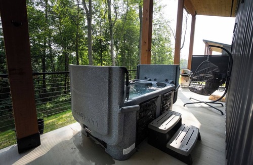 New in 2023, five modern mountain chalets tucked into a hillside with wooded views from walls of windows in the vaulted living and sleeping areas. Sleek efficient design and indulgently luxe finishes reminiscent of your favorite vacation posts, make Legends Lane the latest and greatest place to shack up in the Hocking Hills. With a seasonal gas fireplace, fire ring, hot tub, and shower built-for-two, you may never want to leave. SaunaPods and the Chalets seasonal resort pool are located on the same campus, which is a couple miles up the road from the epicenter of the region's natural amenities: the Hocking Hills State Park Visitors Center. Queen bed. One bath. High-speed internet. Pet friendly (limit two; $50+tax pet cleaning fee; no dobermans, pit bulls or rottweilers.)
