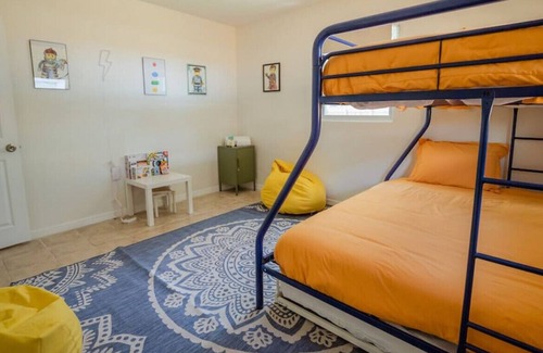The kid's room is themed out in Lego décor and even has a lightning bolt nightlight that your kids will love. There's a bunk bed with a full on the bottom, twin on the top, and another full trundle bed underneath. If you need additional sleeping arrangements, we've provided a full size air mattress which is stored in the closet in the kid's room. The kids will find plenty to keep them busy when they discover the Legos and games in their room.