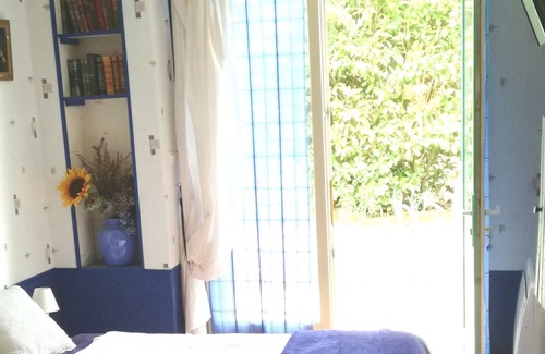 On the ground floor of our house, 2 Bedrooms with bathroom and independent terrace, one with double bed (blue bedroom) and an adjoining equipped kitchenette, and one with 2 single beds (yellow bedroom), (convertible into double bed) .