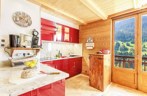 Gite located on the first floor of the House of the owner. Independent entrance by outside staircase. Stay-kitchen-living room (fully equipped built-in kitchen), flat screen TV, access to the balcony. Wifi connexion. 3 rooms (2 rooms for 2 people including 1 room equipped with a home-theater) / 1 room for 4 people: 2 beds 1 person bunk + 1 bed 2 people). Duvet, sheets included + beds made on arrival. 1 bathroom + 1 bathroom (shower). 2 separate toilet. On the ground floor ski locker. 2 private parking spaces to the gite + public parking nearby. Rental towels. Pets allowed (with supplement). Access games room (table tennis) on the ground floor. Old school of the village renovated into a House with the housing of the owner and a warm apartment with a beautiful view of the Valley. Fine renovation with a quality interior arrangement, numerous services and facilities. Residential quiet and well sun exposed. Great immediate environment overlooking the meadow and the forest environment. Free shuttle service on site in the winter season.