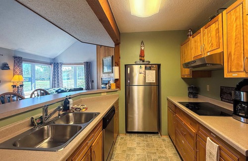 Enjoy quality family time in front of the gas fireplace, cable TV, and help yourself to the many board games and movies we have available. The kitchen is fully stocked with spices, cooking ware, coffee supplies, and even cold mugs in the freezer waiting for you to kick back after a day on the slopes. The dining room table comfortably fits eight, plus four can sit at the kitchen bar seating.