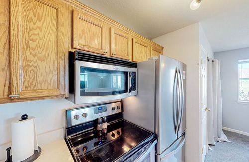 After a day of exploring the city or the natural wonders nearby, come home to find ample space to relax. Grab a change of clothes from the washer/dryer, stream movies by the electric fireplace, or step out onto the balcony with a favorite beverage in hand. If you're planning to cook, you're in luck - the kitchen is equipped with stainless steel appliances, all the dishes and flatware you need, and an adjacent dining space for homemade meals and after-dinner board games.