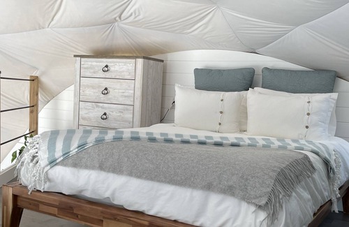 Spend the night in Grand Manan Island's only Geodesic Dome! Here, you will enjoy a view of the Grand Manan Ferry as it comes and goes around Swallowtail Lighthouse, and the sunrise in the morning. The bright dome is equipped with a full kitchen and bathroom, two organic cotton queen beds (one in the downstairs bedroom and one in the loft), a sitting area, heat and air conditioning. Outside, you will find a hammock, fire pit and Adirondack chairs on the deck.