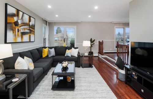2000 SF renovated unit is 20 minutes away from O’hare Airport & 18 min to downtown Chicago! This property has 3 bedrooms, & 2.5 bathrooms. Master suite has a KING, and 2 bedrooms have a Queen. The living room has room for 1 air mattress (Total of 4 beds). Plenty of Kitchen utensils, all you need in a kitchen, including cooking spices and oils! Children friendly & lots of technology!