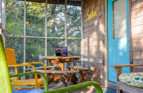 Private Ocracoke Island vacation home with spacious screened porch and great treetop sunset views from rooftop deck. Located on a dead end lane in a residential area. Easy walk to shops, galleries, restaurants and Silver Lake Harbor.