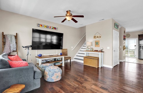 After a long day at the beach, please relax in our private fenced backyard which is beautifully landscaped. There is a patio with Adirondack and lounge chairs in addition to a Weber grill. Additionally, you can enjoy your favorite beverage at your very own private Tiki Bar.