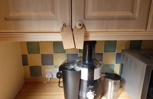 The kitchen has an integrated fridge, integrated freezer, microwave, integrated dishwasher, electric fan oven and gas hob. As this is our house, it is fully equipped with extras like a mixer, juicer etc. It is fully equipped with cookware, cutlery and crockery. In addition to the washing machine, we have also installed a condenser tumble drier.