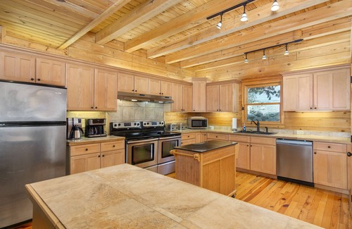 • A spacious, well-equipped kitchen will make cooking a breeze with two refrigerators, two stoves, two drip-style coffee pots (with an option for Keurig cups), and a pantry for grocery storage.