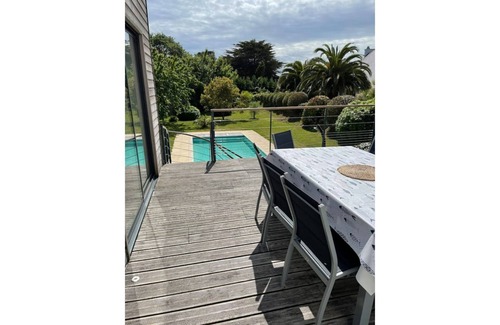 Listed gîte with swimming pool and games room near the sea is located in Nevez. Listed gîte with swimming pool and games room near the sea provides accommodation, featuring Security/Safety, Sports/Activities, Wellness Facilities, among other amenities. This House features Security/Safety, Sports/Activities, Wellness Facilities, to make your stay a comfortable one.