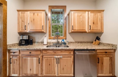 Guests access the home through a coded front door. Guests will have access to the entire house except for the owner's closet. There are only 3 steps to get into the house, once inside it is all one level. Guests will also have access to the subdivision's private cove area where you can picnic, play on the grass beach area, fish, kayak using our two kayaks, and swim. ENTERING THE LAKE IS CURRENTLY NOT PERMITTED DUE TO RESTORATION of Lake until further notice (Maybe Fall 2025 or Early 2026).