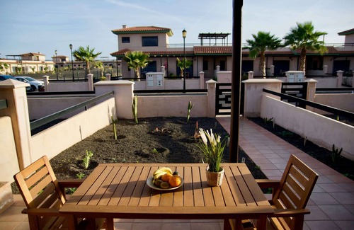A comfortable, spacious and extremely bright house, in a charming place, for lovers of silence, tranquility and the sound of the sea in the distance. There is a double garden at the entrance and at the rear, and a large roof terrace to enjoy the view of the sea and the surrounding volcanic mountains. Residents have access to swimming pools, paddle courts and children's playground.