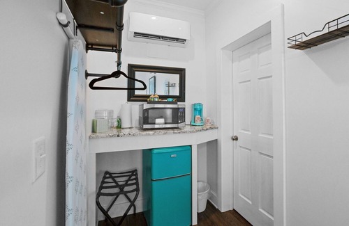 Open the door to the Duck Creek Room and feel instantly at ease. The room springs to life through art inspired by Duck Creek's own natural beauty. A blend of vibrant turquoise and antique furnishings invited you to take a breath and just be. The contemporary bathroom assures that your sanctuary is equipped with all the conveniences of today. Has all the amenities of home while enjoying your escape from reality.