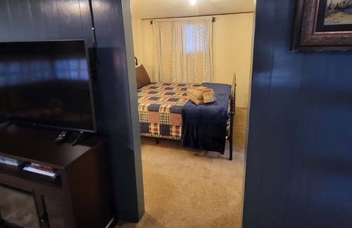 Little Red is the perfect get away for you and your significant other to reconnect, celebrate an anniversary or honeymoon, or just relax for a few days. This vintage style cabin features a queen-sized bed and a tv in the bedroom. The adorable bathroom has a walk-in shower, toilet, sink and cute feature wall. Cook you and your honey's favorite meal in the fully stocked kitchen, or order take-out and eat together at the dining room table. Brew your morning coffee and enjoy the wildlife from the screened in front porch. Grill some steaks or veggies for dinner on the propane gas grill. Located in the quiet Upper Canyon, this cabin is only a short drive to Midtown. Cozy up on the couch and catch up on your favorite shows, or sports teams with the cable. Transport yourself to the good 'ol days with the charming antiques and vintage charm. Keep your eyes open for all the wildlife that passes through. Here you will see deer, elk, foxes, turkey, and in the warmer months maybe even a black bear. THIS CABIN HAS NO AIR CONDITIONING