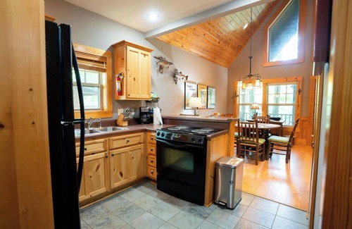 When you’re not out on the river, you can sit in the rockers on the quaint deck with a peaceful view, whether it’s morning, noon, or night, you’ll always enjoy watching the Little Red River float by. You can also walk down to the river and fish off the banks or hop in a boat and float down the river in search of your perfect fishing spot. This cabin also includes a dock at the local marina.