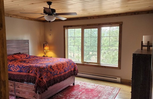 Very peaceful with views that are awe inspiring. Chateau feel Cabin nestled in the pines. Very close to beautiful hikes in the sandre de cristos, bishops castle, and the Great sand dunes. Perfect