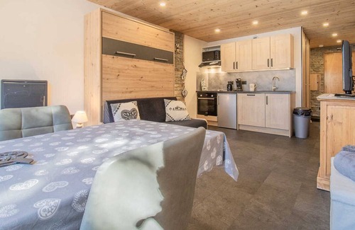 Studio on the first floor of a residence with 40 tourist accommodations. Living room-kitchen area (1 retractable double bed 140x190 cm) opening onto a balcony, separate WC, wet room (walk-in shower). Ski locker. Common parking in front of the residence. Comfortable studio enjoying a privileged location 100 meters from the cross-country ski center of Bessans in a very quiet area. Decorated and cozy interior. Functional and spacious. Small south-facing balcony with an unobstructed view of the mountains.