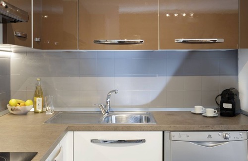 • Equipped kitchen with microwave, electric oven, dishwasher, large fridge with freezer, and Nespresso machine