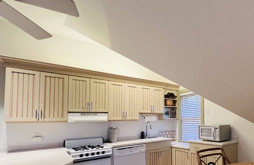 This 1 bedroom, 1 bathroom home has a spacious living area. Kitchen and dining room The bathroom features a large walk-in shower and modern fixtures. The Carriage House is situated on a quiet, private street and offers easy access to all of Nantucket’s best beaches and outdoor activities. One on site parking spot available.