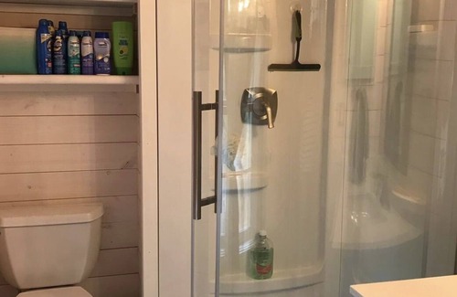 Located on a paved road, you will have access to over 5 acres of South facing lakefront living on Lake of the Woods. Privacy will be found on over 550 feet of easy lake access. Safely swim at the natural weed-free sand beach or take a plunge off the large dock into the clear waters of the tranquil bay. The 2 bedroom cottage features awesome lake views from every angle, being located on a granite point facing southwest. For your comfort, the cottage is fully insulated and has air conditioning, heating and abundant outdoor living spaces to relax. Each bedroom is equipped with a new queen sized bed and the cabin has hardwood flooring throughout. The modern kitchen is well equipped with quartz countertops, an extra large SS fridge with lower freezer drawer, microwave, countertop convection oven and 2 induction cook tops. For outdoor cooking, there is a Weber SS barbecue with a full propane tank and BBQ utensils. The main living area is comfortably furnished with modern reclining chairs and a full sofa to unwind. The dining table accommodates 6. In the bathroom, you will find a luxury heavy glass surround shower, a quartz top vanity with regular flush toilet for your convenience.